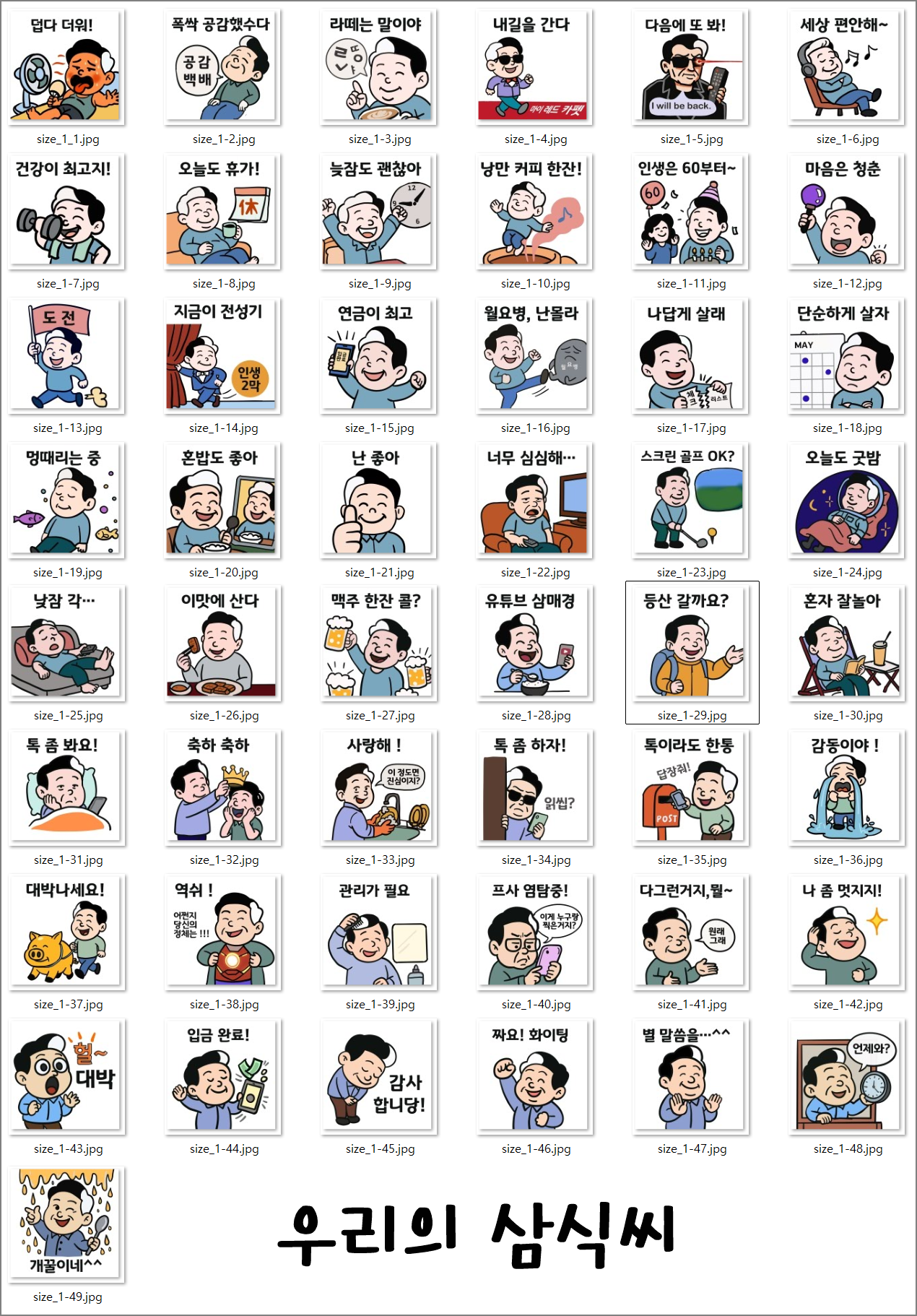 아래는 이모티콘의 모습들로, 모두 49장 1세트입니다.