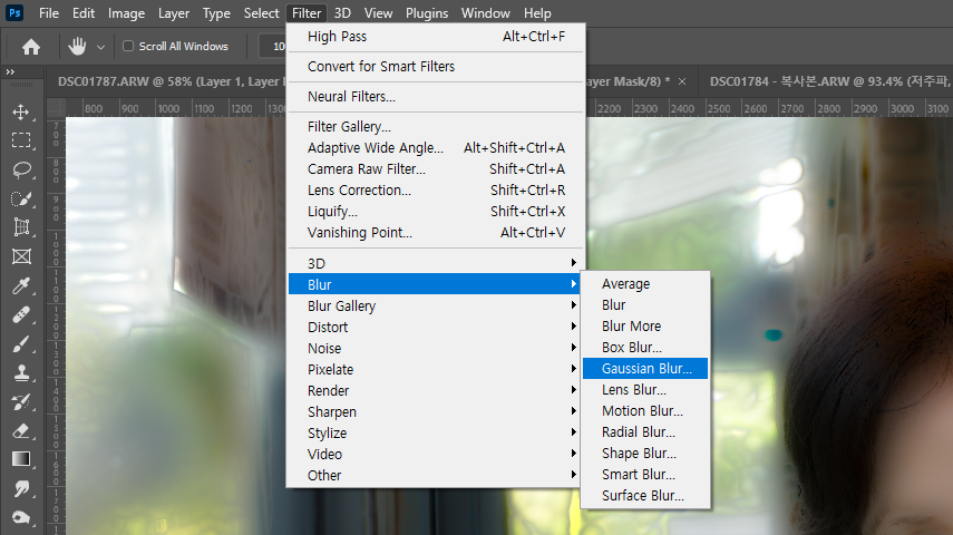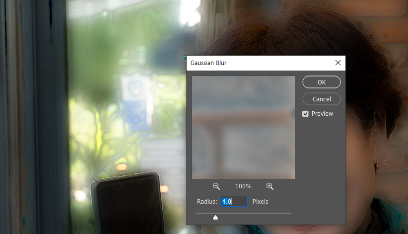 4) Filter -> Blur -> Gaussian Blur 적용